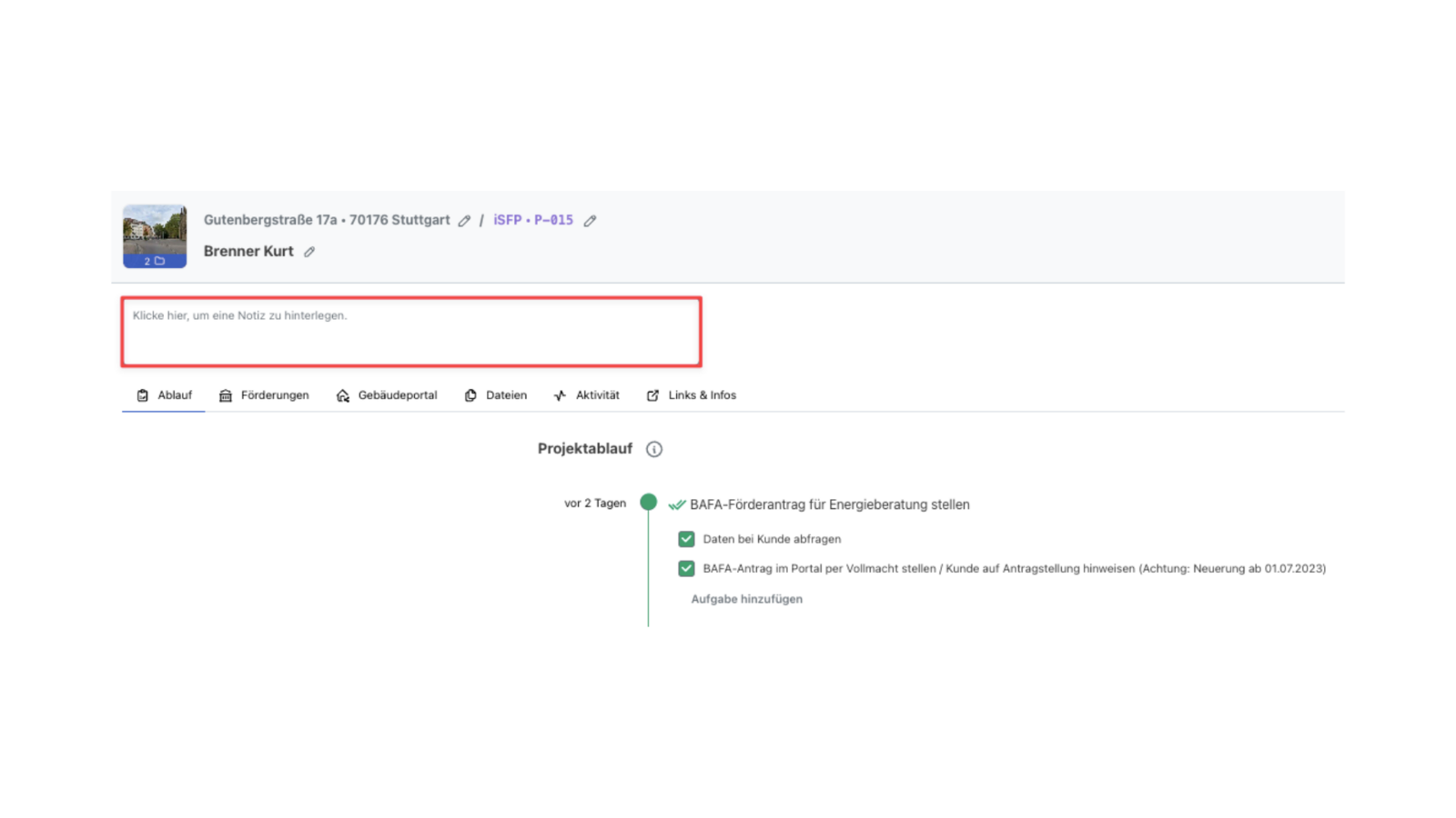 Klicke auf das markierte Feld, um eine Notiz zu erstellen.