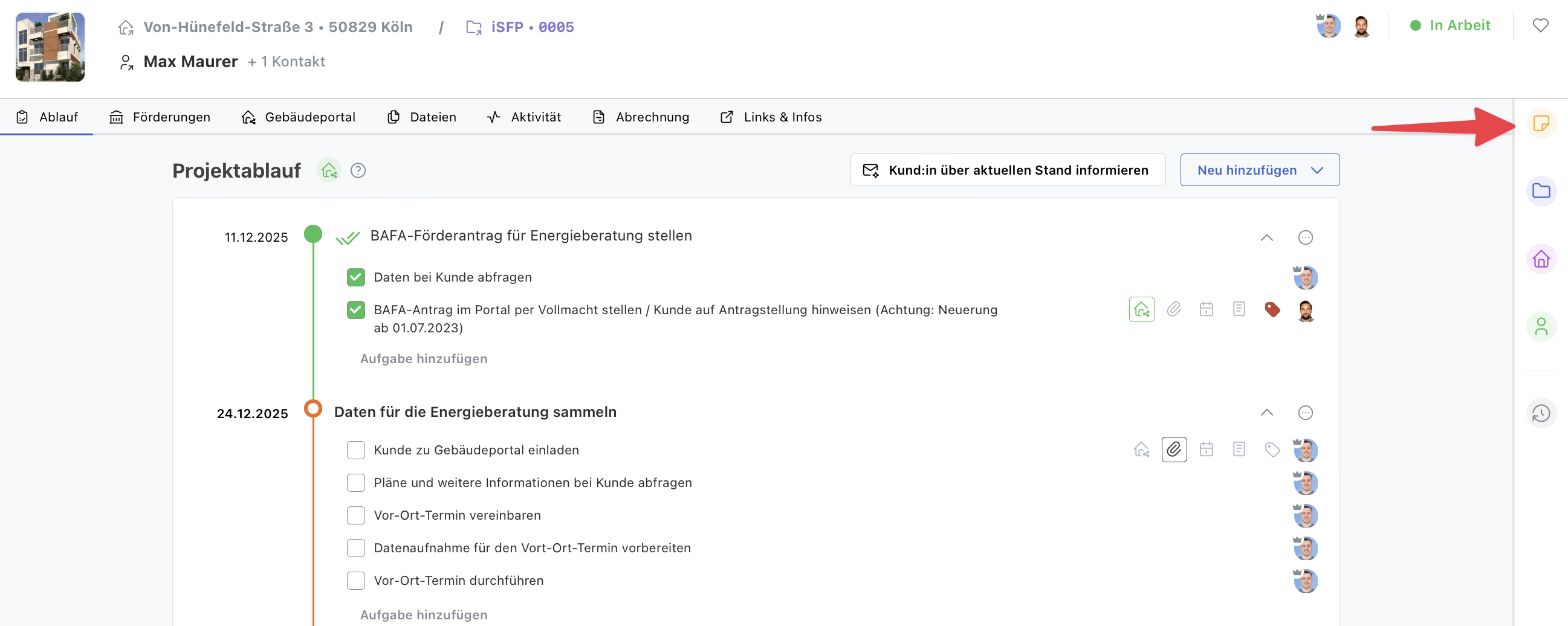 Gehe in das Projekt, in dem du eine Notiz erstellen möchtest.