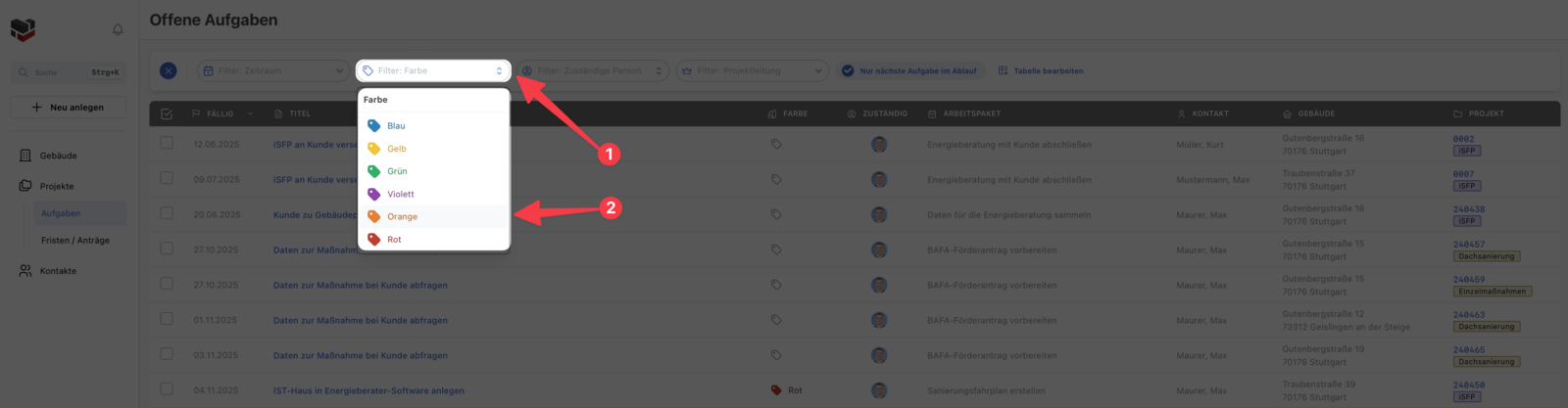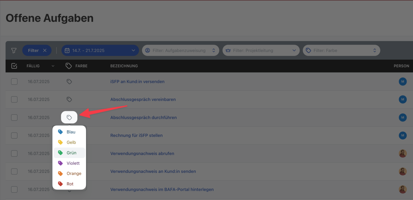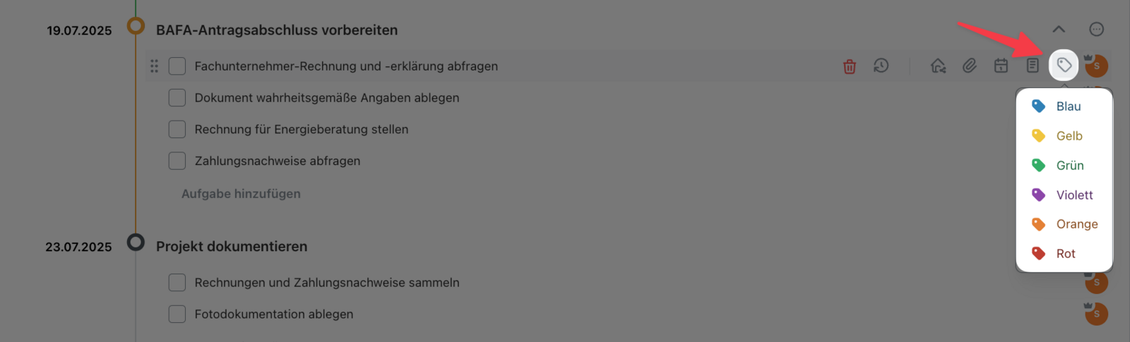Wähle eine Farbe aus, die die Wichtigkeit der Aufgabe widerspiegelt.