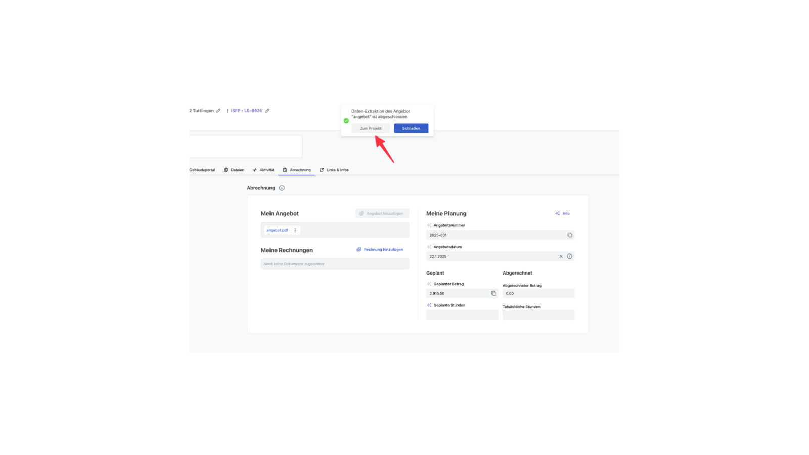 Lade unter "Angebot" dein Angebot hoch, aus dem du die Daten extrahieren lassen möchtest.