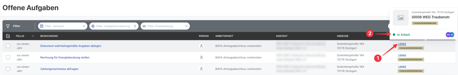 Bewege deinen Mauszeiger auf die Projektnummer bei einer anstehenden Aufgabe. (Die Projektnummer nur mit der Maus berühren, nicht klicken!)