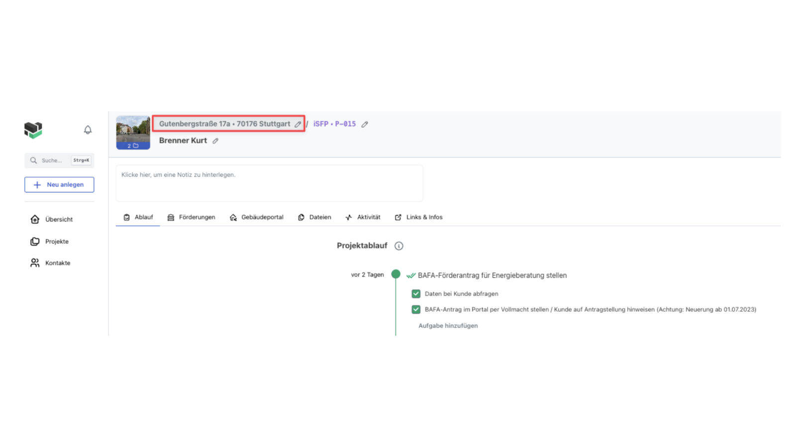 Gehe zu dem Projekt, in dem du deine Gebäudedaten verwalten möchtest.