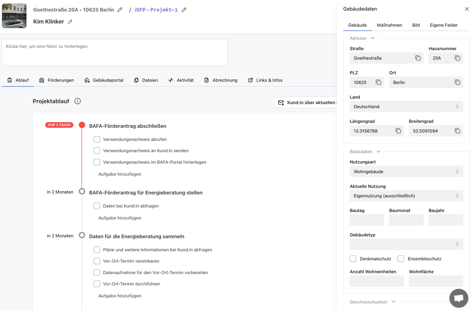 In diesem Artikel erfährst du, wie du die Gebäudedaten deines Projektes verwalten kannst, indem du Daten änderst oder ergänzt.