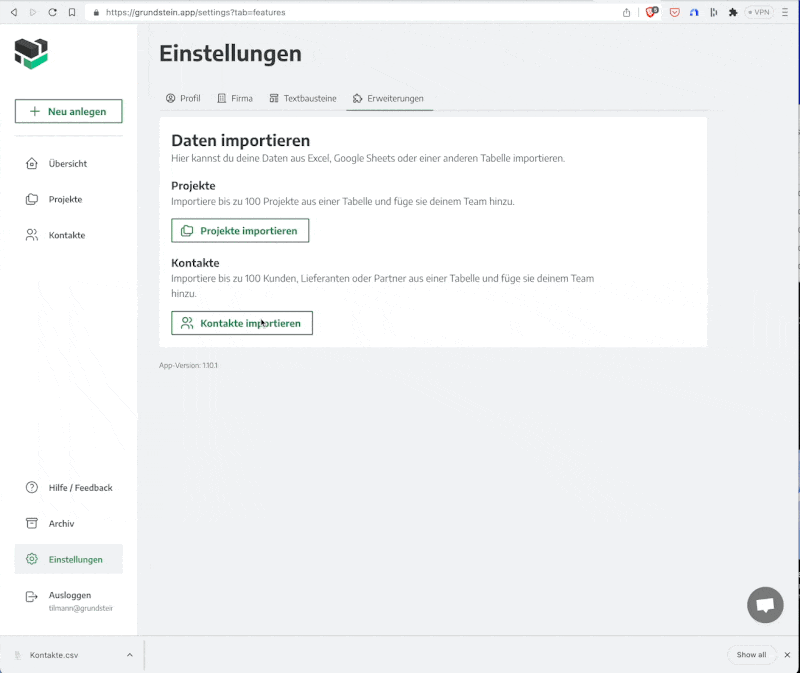 Gehe zu deinem Kontaktbereich in der Grundsteine-Software und stelle sicher, dass alle Kontakte korrekt angezeigt werden.
