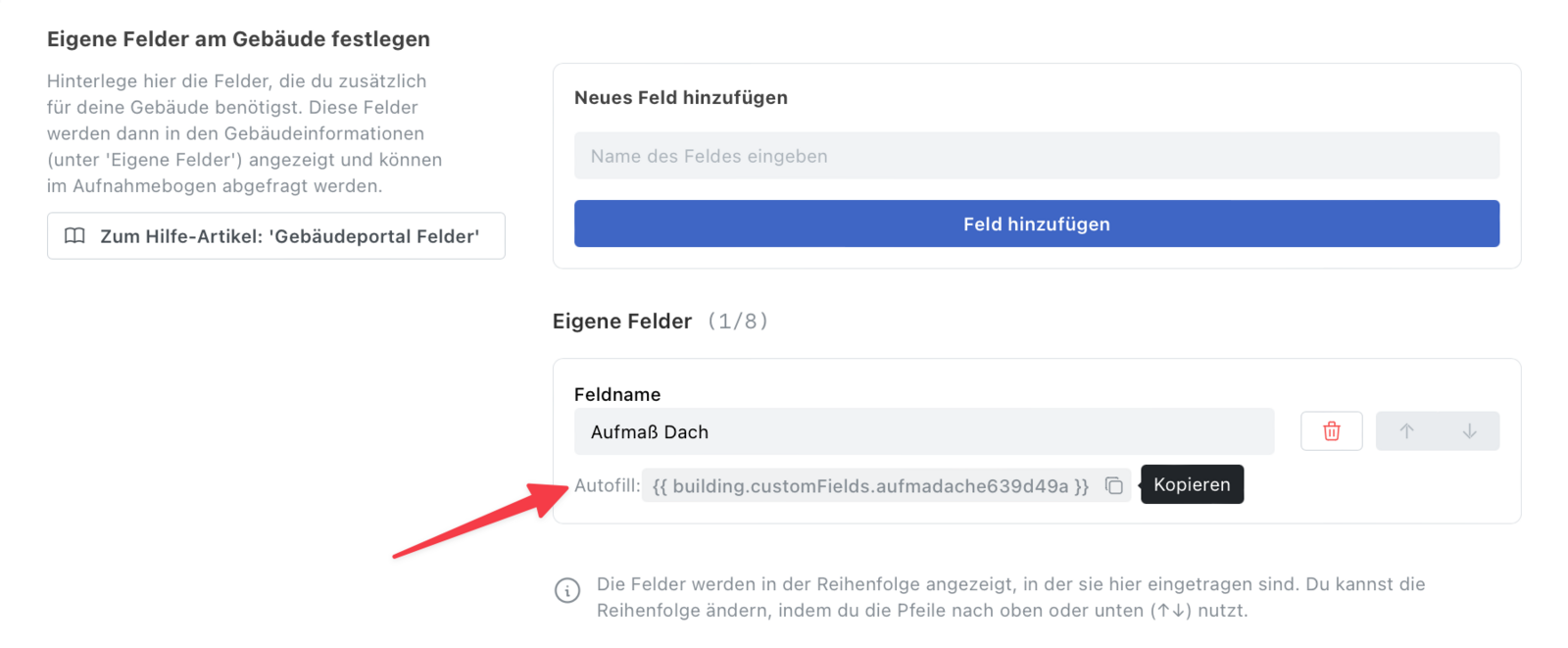 Um die Platzhalter für die eigenen Felder in Autofill-Vorlagen zu nutzen, folge diesen Schritten: