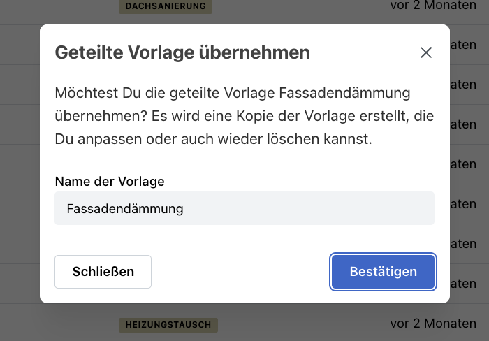 Bestätige, dass du die Vorlage zu deinen Vorlagen hinzufügen möchtest.