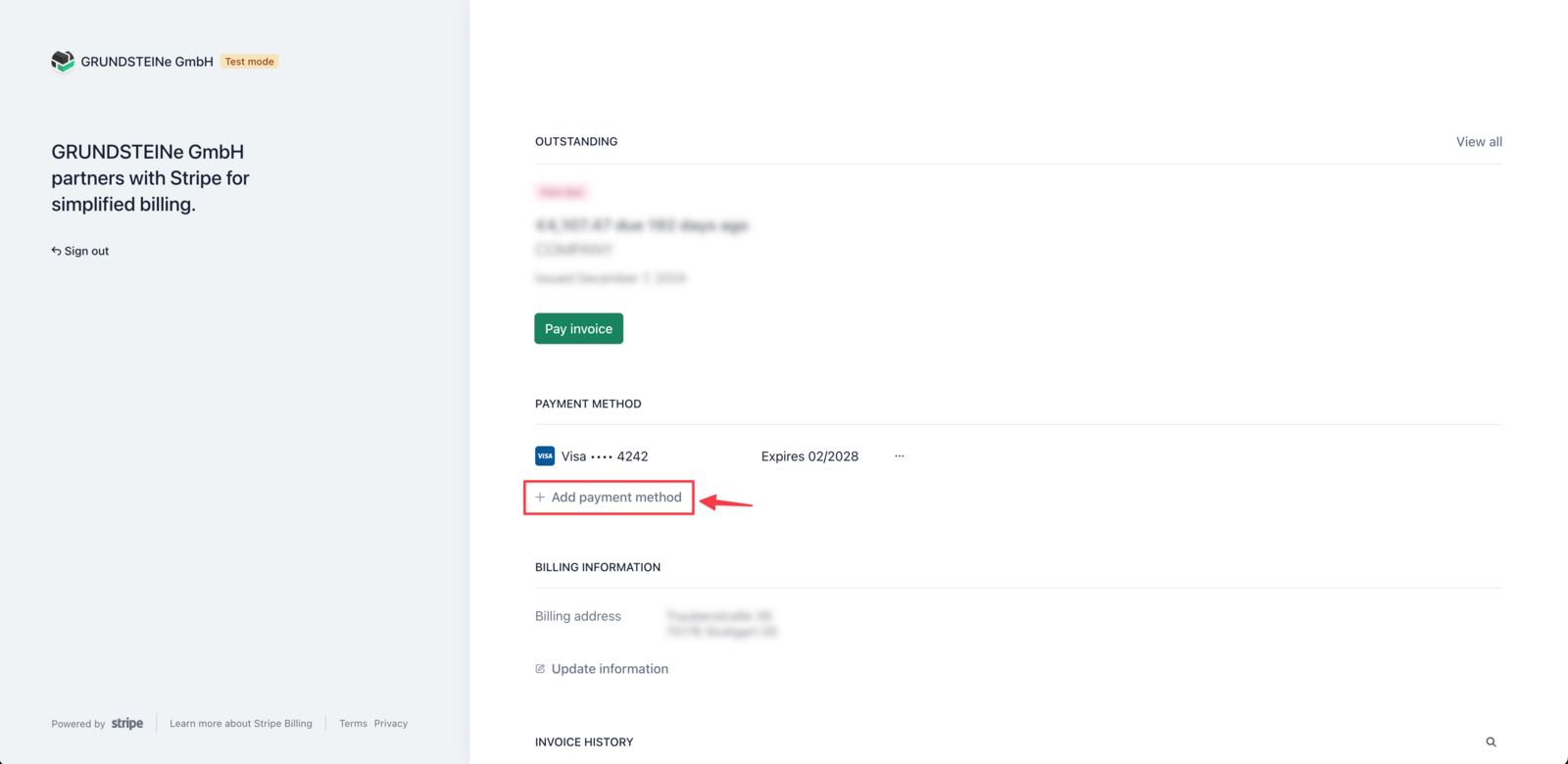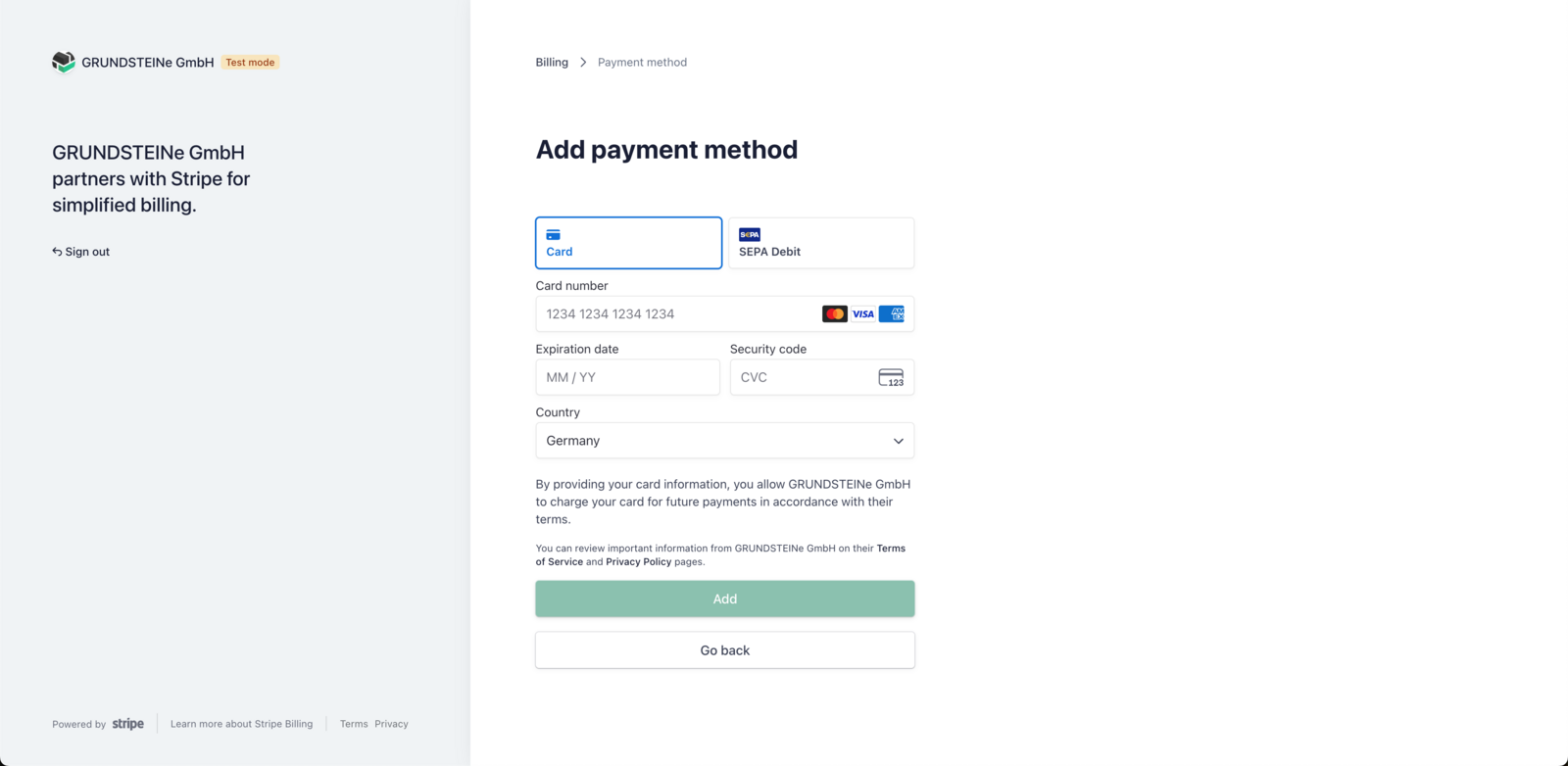 Wähle "Zahlungsmethode hinzufügen" aus, um anschließend deine neuen Kreditkarten- oder SEPA-Daten zu hinterlegen.