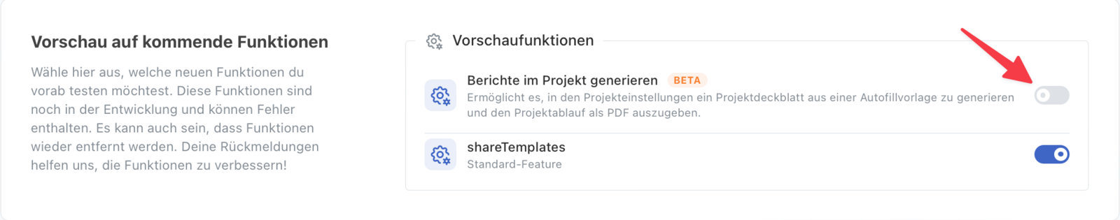 Klicke dort die Beta-Funktion an, die du testen möchtest (siehe roter Pfeil).